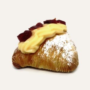 Ripieno: Semola, ricotta, uova, zucchero, aromi naturali: limone, pan di spagna (farina di frumento, uova, zucchero), limoncello.